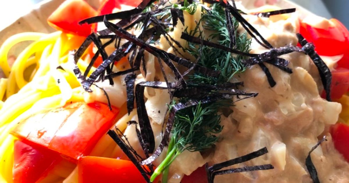 Fusión japonesa perfecta: pasta con salsa de soja, algas y pescado, adaptando la tradición italiana a sabores locales. ¿Sabías que? En Japón es común encontrar pasta en los menús de desayuno.