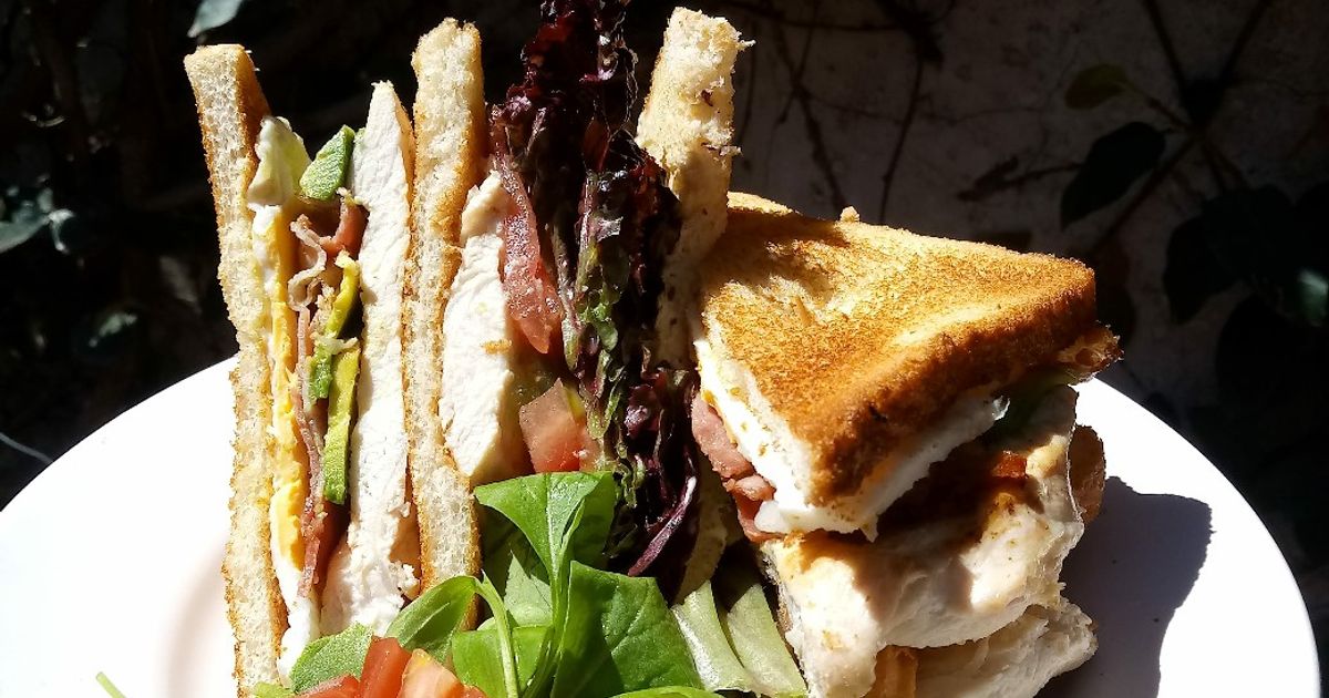 Tres capas de pan tostado con pollo, panceta, lechuga y tomate. Un clásico de los bares estadounidenses.