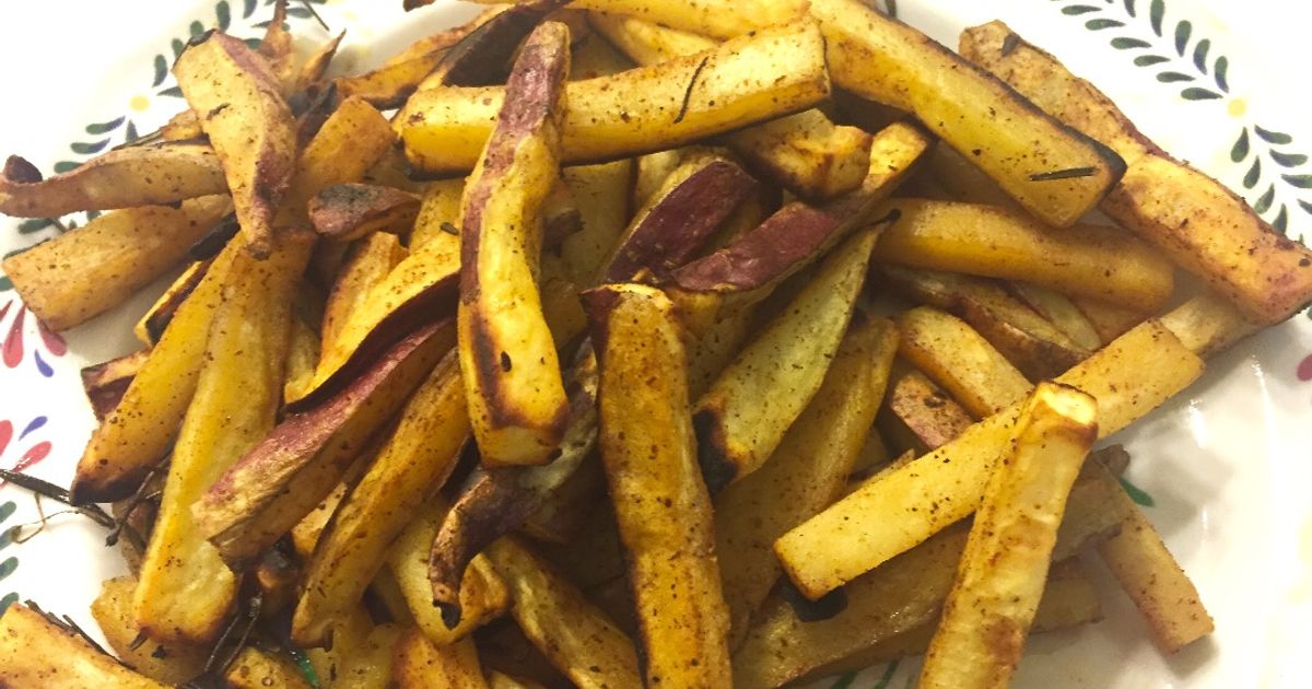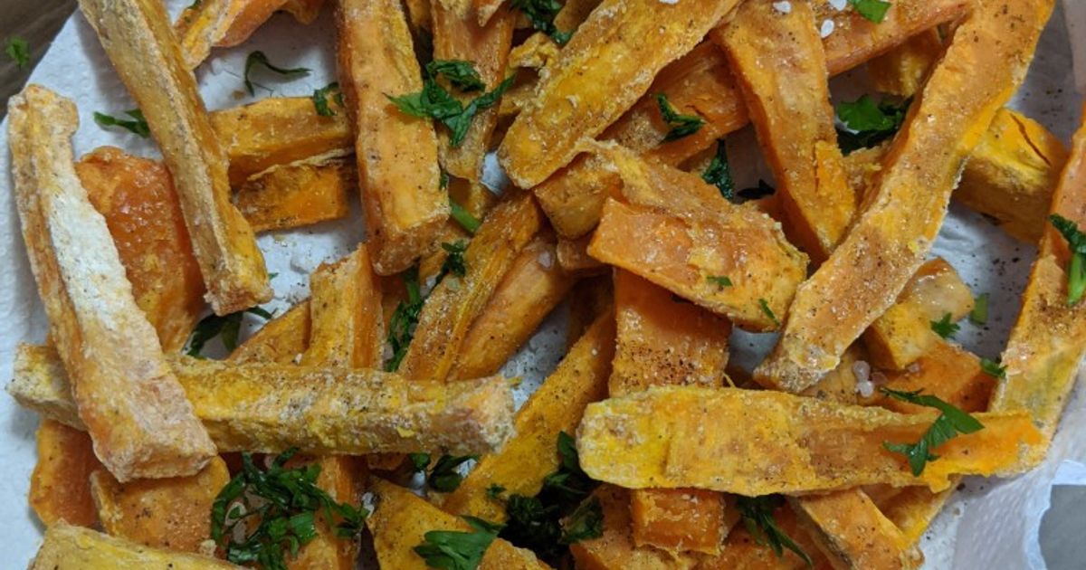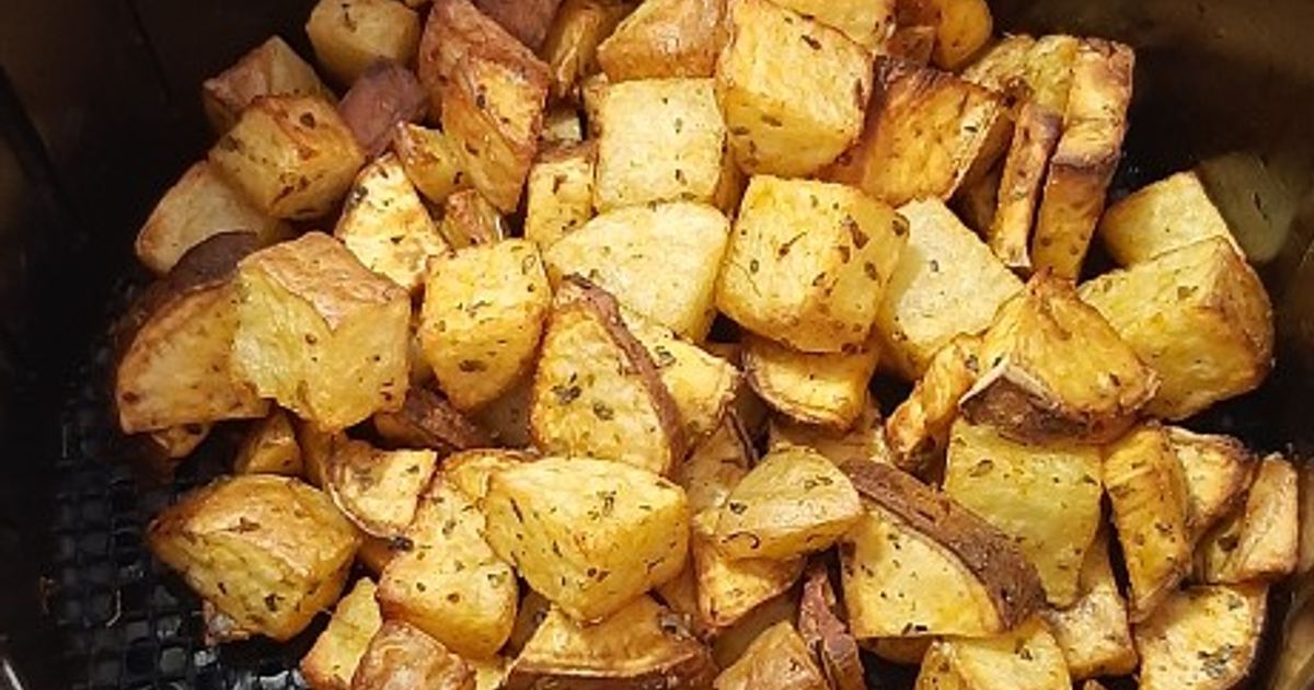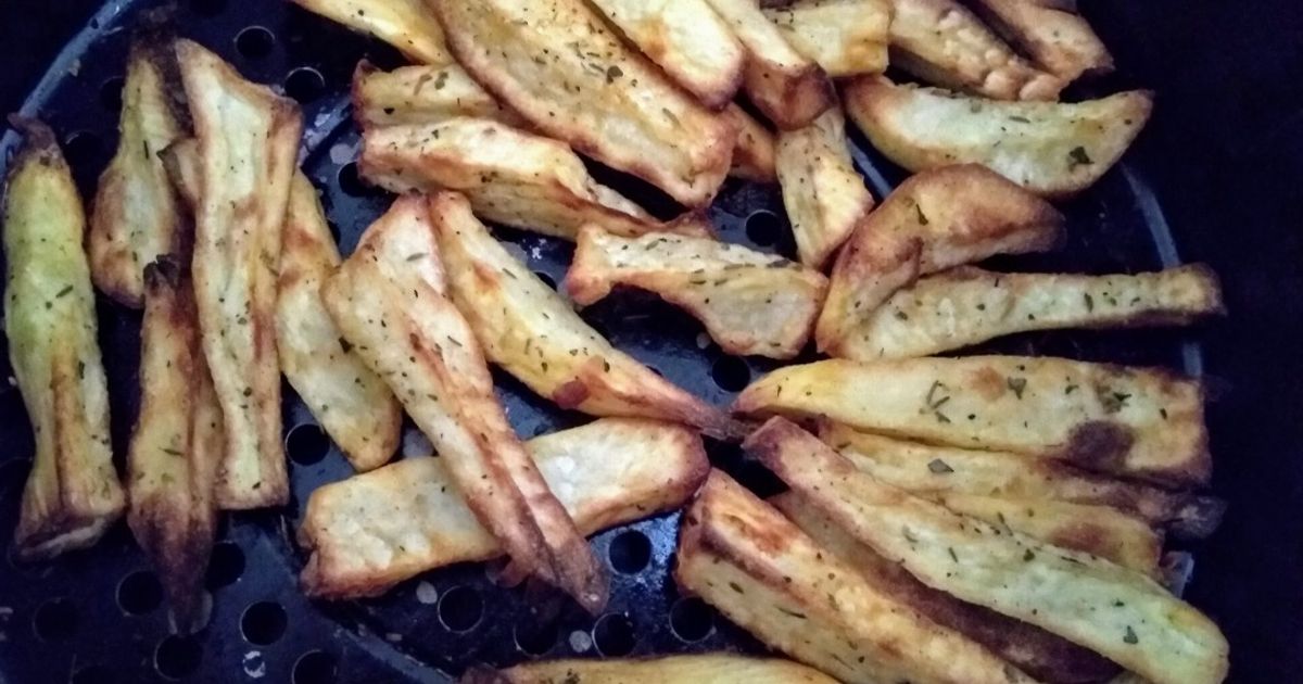 A batata-doce pode ser feita na air fryer de várias formas: em rodelas, palitos, cubos ou inteira.