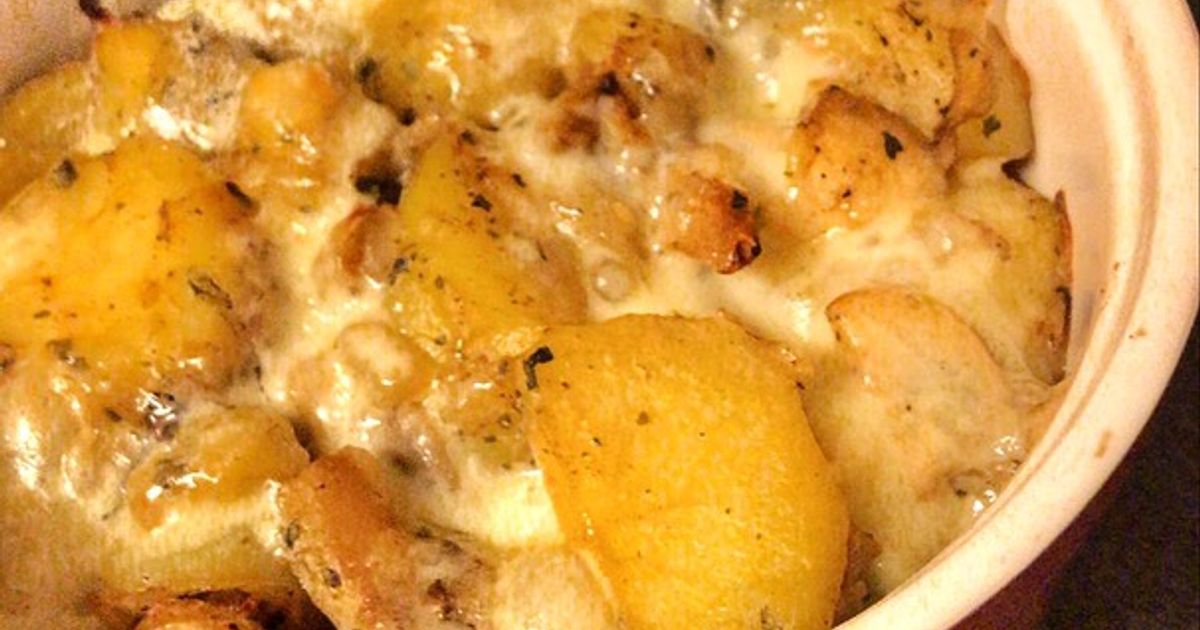 Gratin forestier – champignons, pommes de terre, lardons et morbier.