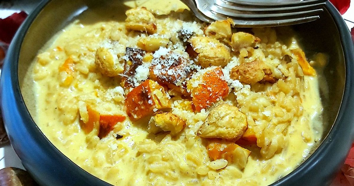 Un risotto de saison avec le potimarron, châtaignes et cèpes, bien crémeux, un peu croquant et très gourmand...😋