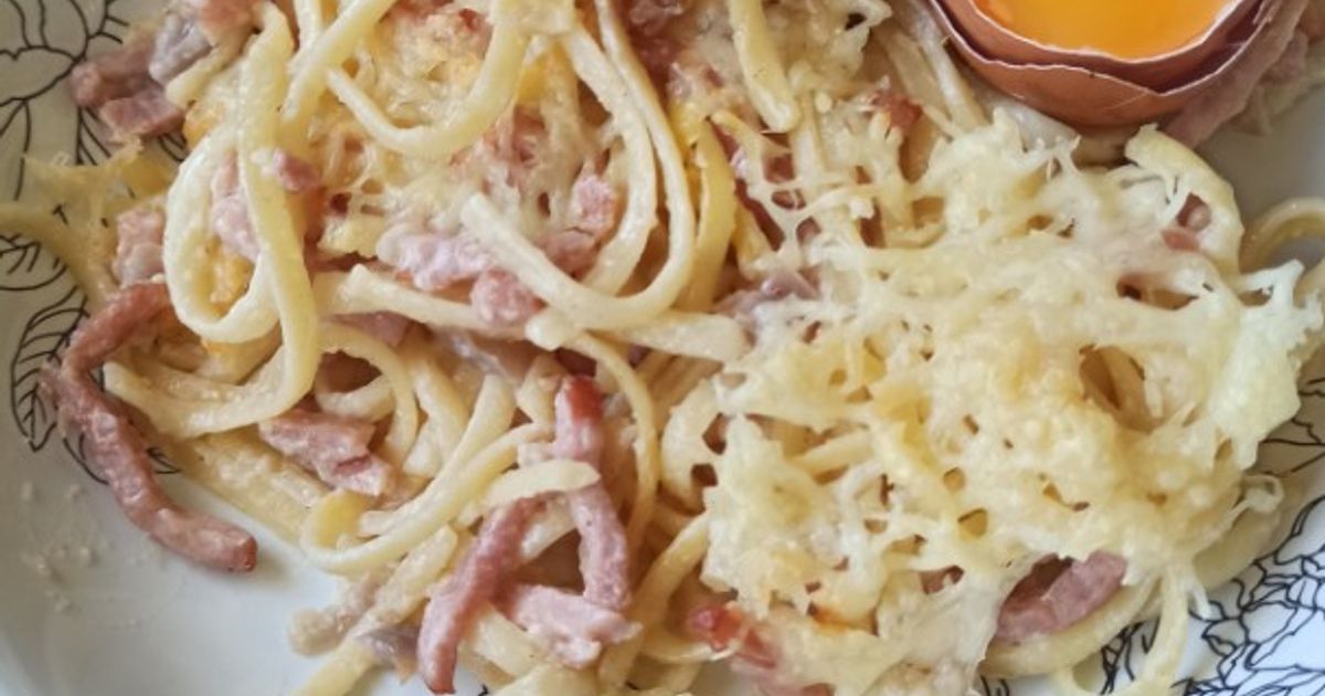 Jaunes d’œufs + parmesan + pancetta = pâtes crémeuses et savoureuses sans crème.
