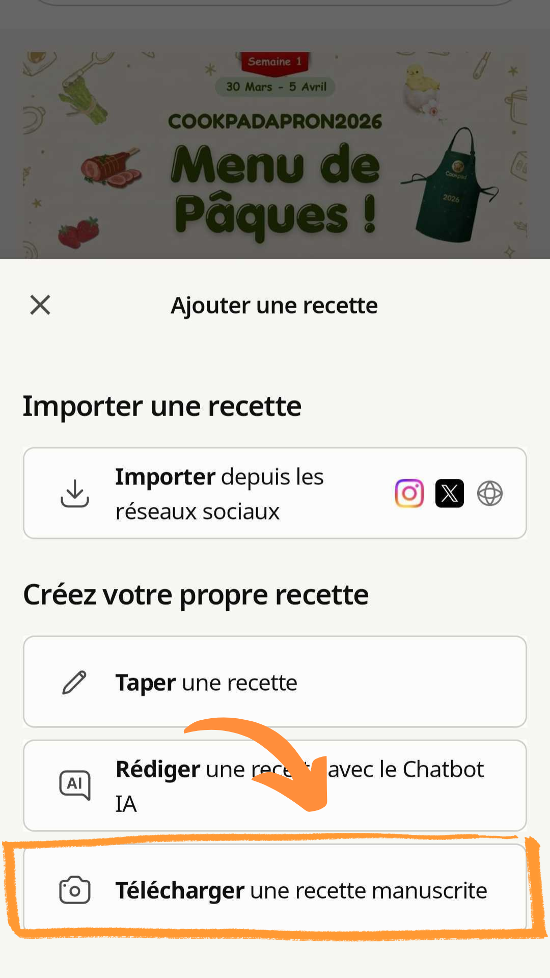 - Ouvrez l'application Cookpad et créez une nouvelle recette.