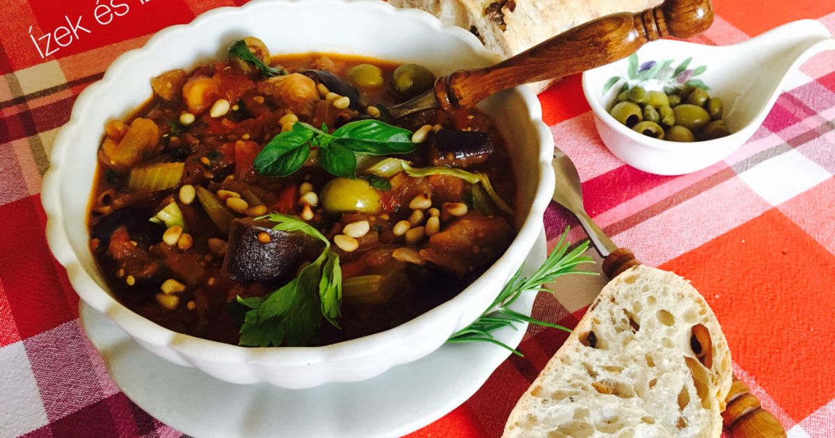 Egy szicilíai ételspecialítás, melyet hidegen elöételként fogyasztnak az olaszok. Nagyon sok változata és elkészítési módja van, de nincsenek szigorú elöírásai. Olaszországban volt szerencsém megkóstolni, és ahogy az emlékezetemben élt, úgy próbáltam elkészíteni. Friss zöldségekből: padlizsán, szárz…