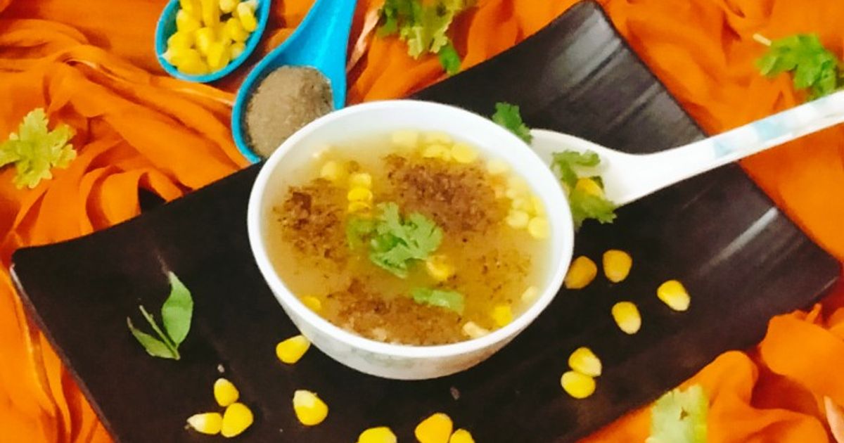 Sweet corn, and a pinch of black pepper make this slightly creamy soup irresistible. Add lemon juice at the end for a fresh zing. Great for kids or anyone who likes gentle spices.
