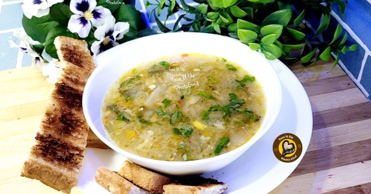 This is the perfect light and healthy option. Sauté onions, garlic, and ginger, then simmer chopped vegetables like carrots, beans, and cabbage in water or light stock. Season with salt, pepper, and a touch of soy sauce or coriander. Clear, simple, and refreshing — a perfect start to any meal
