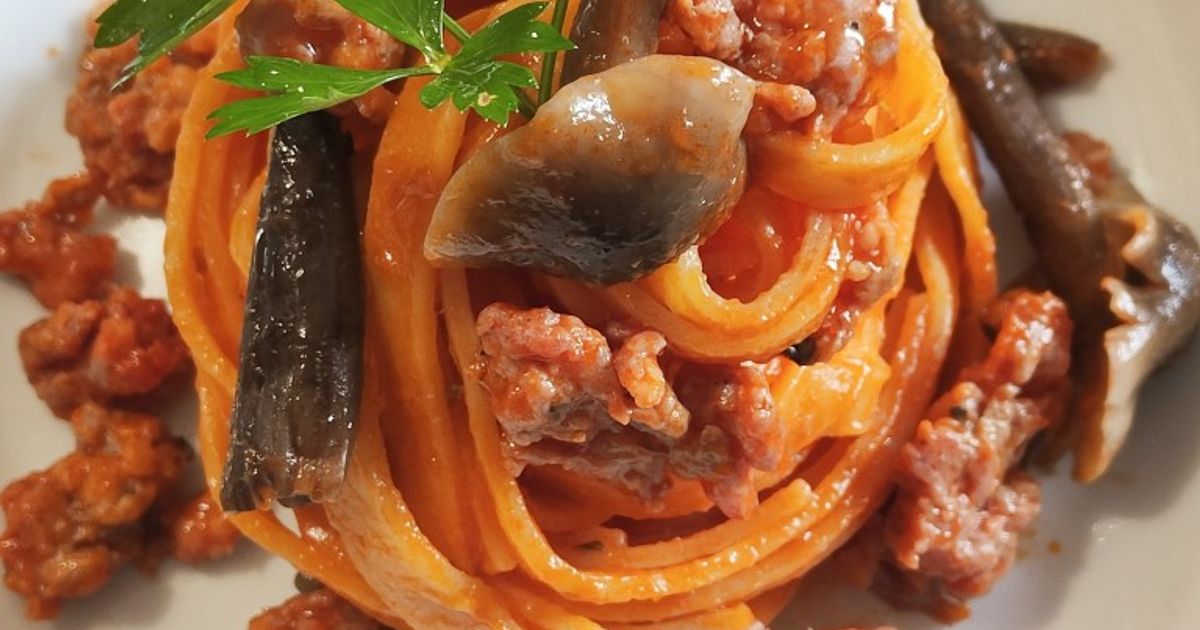 Pasta con chiodini e salsiccia, perfetta per i pranzi d’autunno