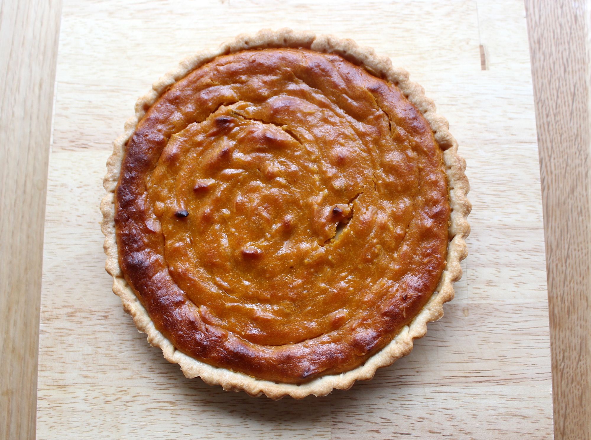 日本向けのレシピでは18cmのタルト型を使用し、元レシピの分量からパイ生地部分は1/2、フィリングは1/3程度の量に調整しています。スパイス類は手に入るものをお好みで加減して使うのが良さそう。