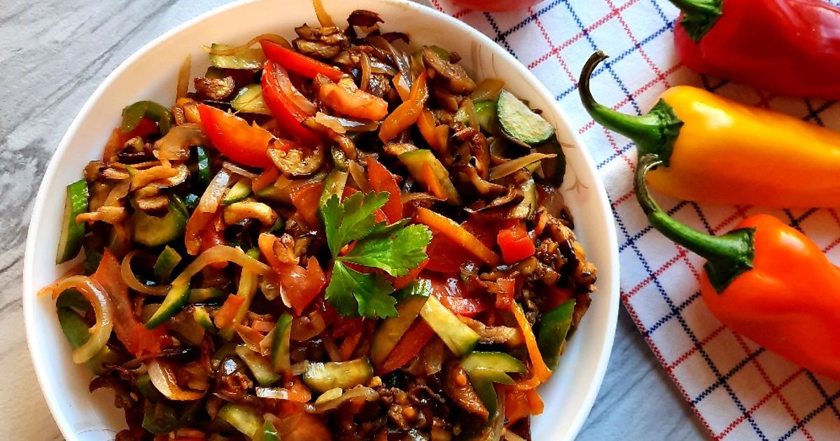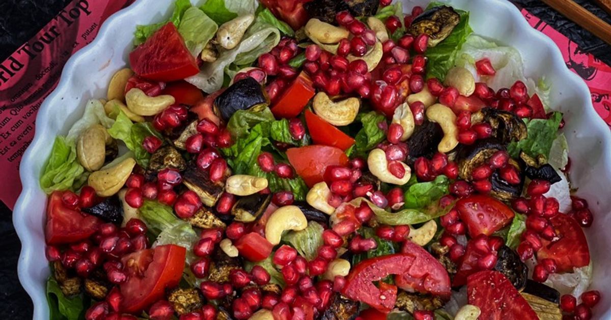 سلطة منعشة تستخدم الباذنجان المشوي المقطع مكعبات