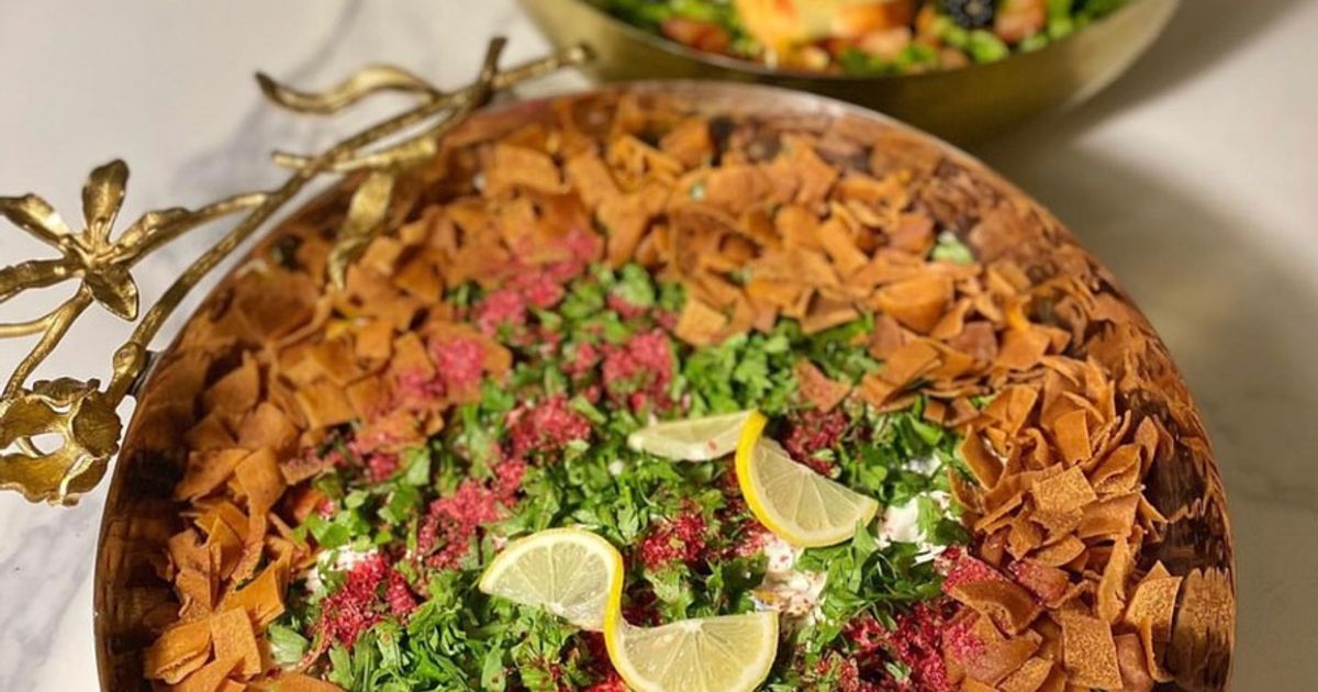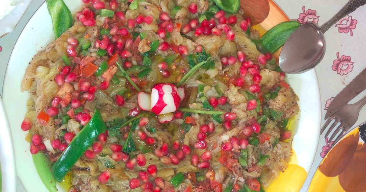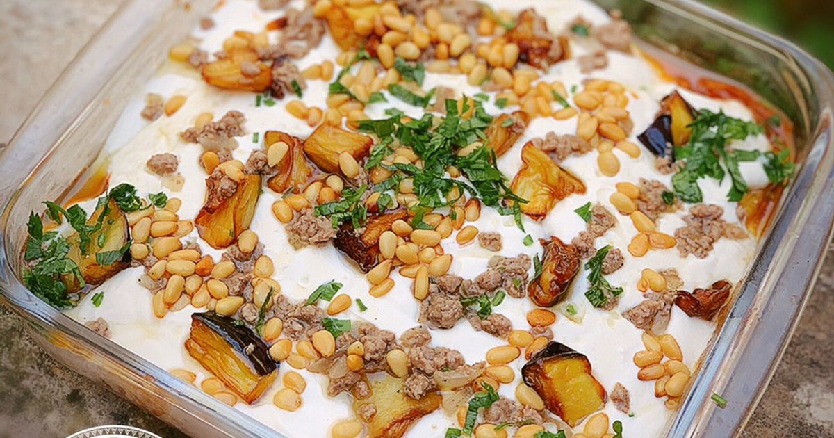 طبق غني يجمع بين طراوة الباذنجان المقلي أو المشوي مع الخبز المقرمش والزبادي بالثوم والطحينة. لجعله أخف، استخدم الخبز المحمص بدلاً من المقلي.