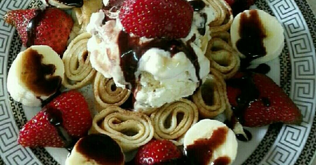 3. كريب الآيس كريم: يُستخدم كبديل صحي للوافل، حيث يُحشى بكرة من الآيس كريم والفواكه.