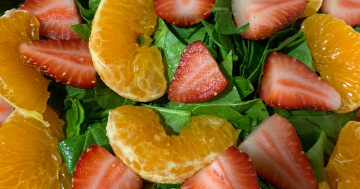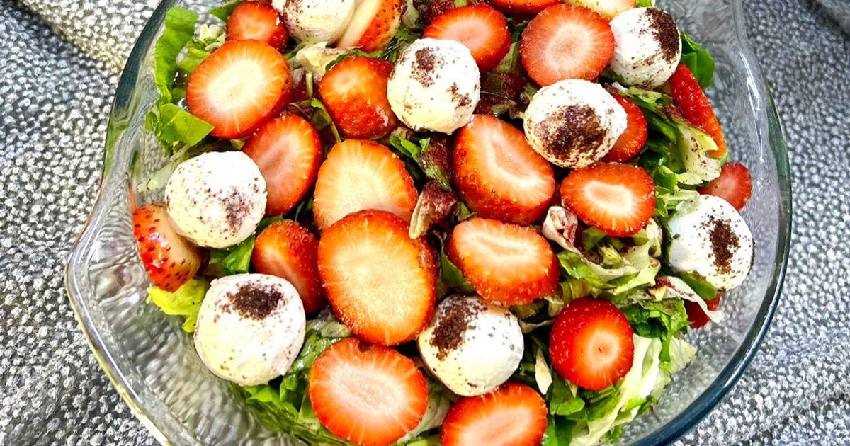استخدم أوراق السبانخ الطازجة كقاعدة للسلطة، أضف إليها شرائح الفراولة، الجوز المحمص، وقطع جبن الفيتا. تبّلها بصلصة البلسميك والليمون. سلطة منعشة ومغذية