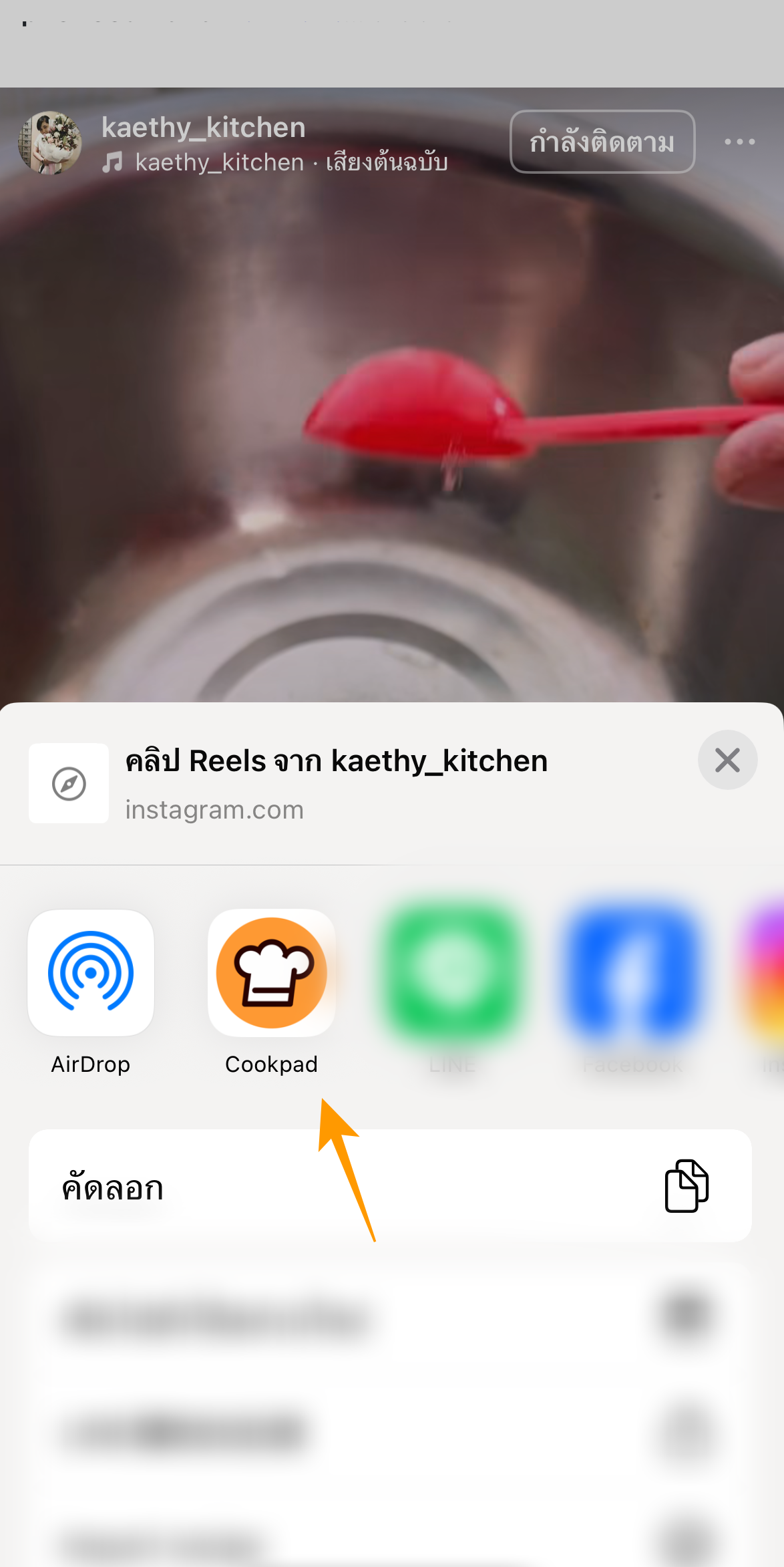 1. แชร์จากเว็บ/โซเชียล: กด "แชร์" -> เลือกแอป Cookpad