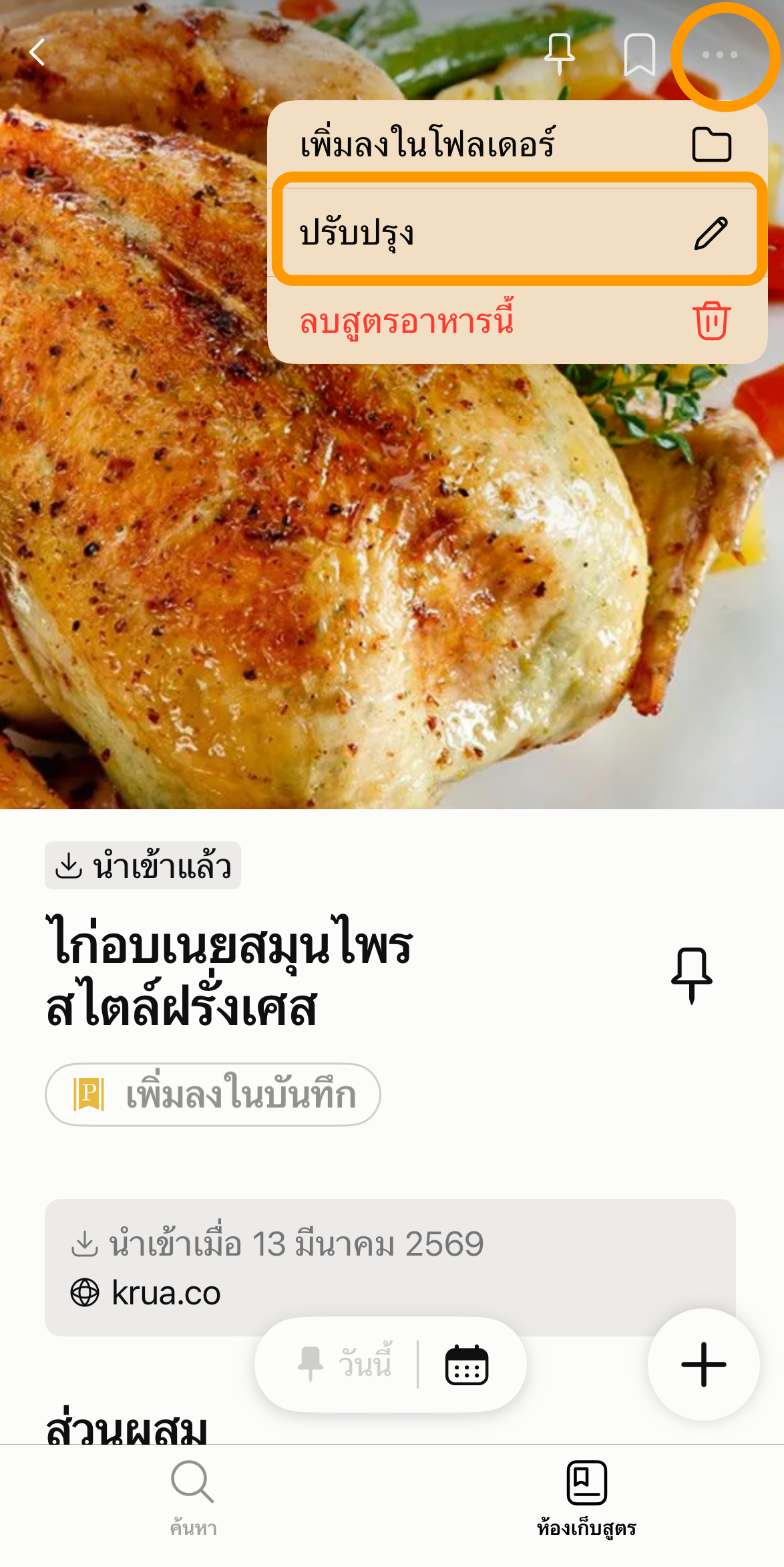 สูตรจะถูกเก็บใน "ห้องเก็บสูตร" > "นำเข้าแล้ว" คุณแก้ไขได้แต่ไม่สามารถเผยแพร่สู่สาธารณะได้ ใช้ได้เฉพาะส่วนตัวเท่านั้น