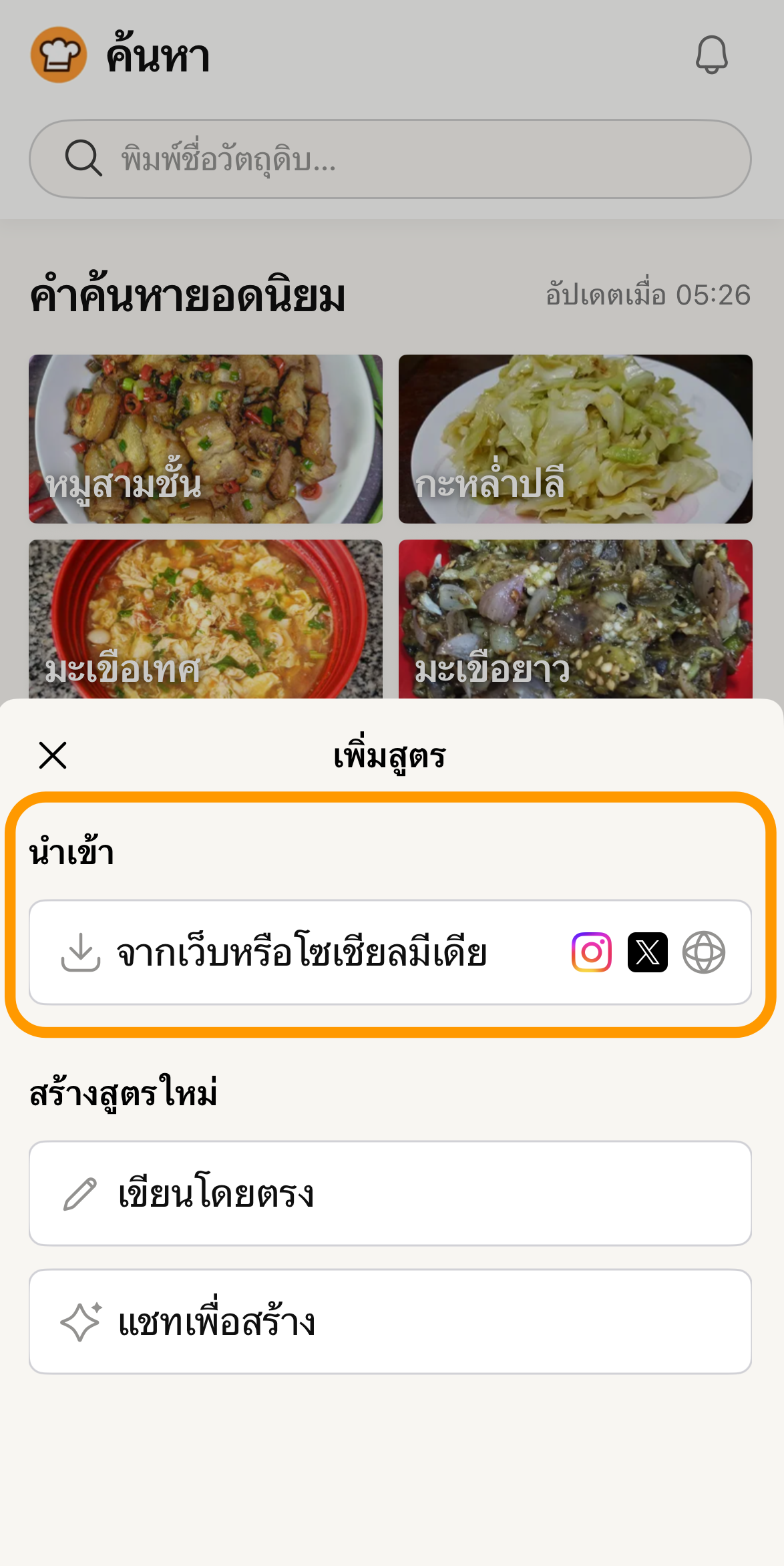 ฟีเจอร์ "นำเข้าสูตรอาหาร" ของ Cookpad ช่วยให้คุณย้ายสูตรโปรดจากทั่วอินเทอร์เน็ตมาไว้ในคลังข้อมูลส่วนตัวได้ง่ายๆ