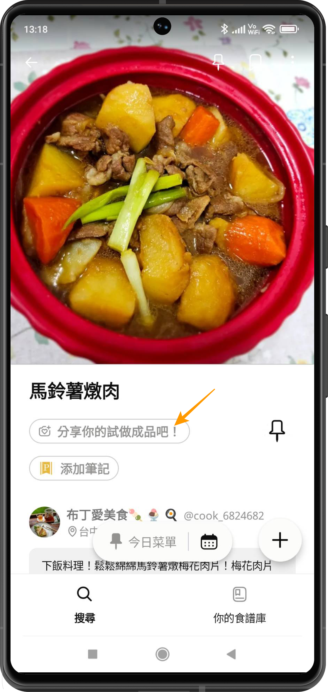 看到喜歡的食譜,最有效也最能享受美味的方式,當然就是試煮看看囉!那煮完肯定要拍下來留念,而這張參考其他廚友的成品照,也同時是對食譜作者最佳的鼓勵,以及自己最棒的紀錄!