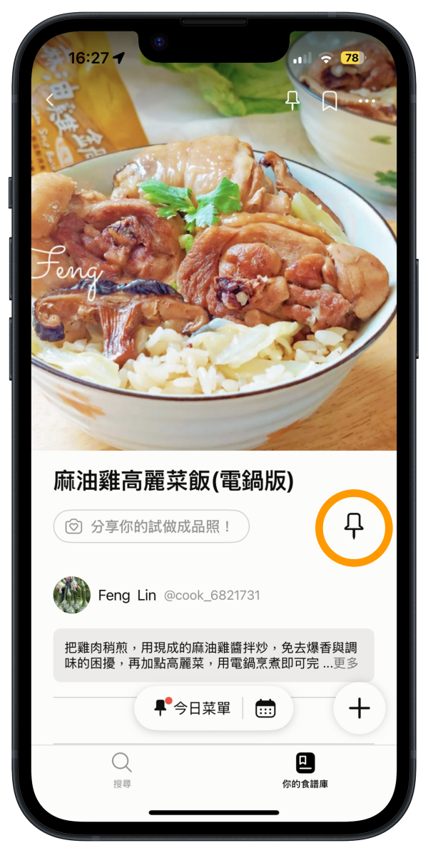 - 你可以透過發布食譜,保留你料理的紀錄。下次想再做一次時,就可以更快且更輕鬆的找到你的料理。