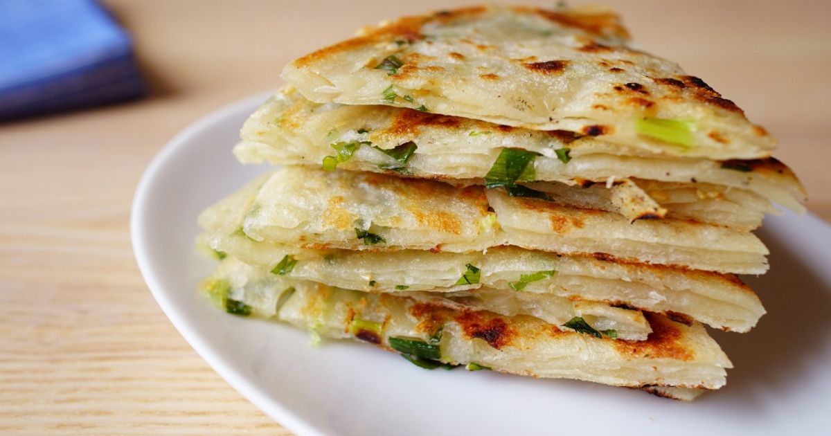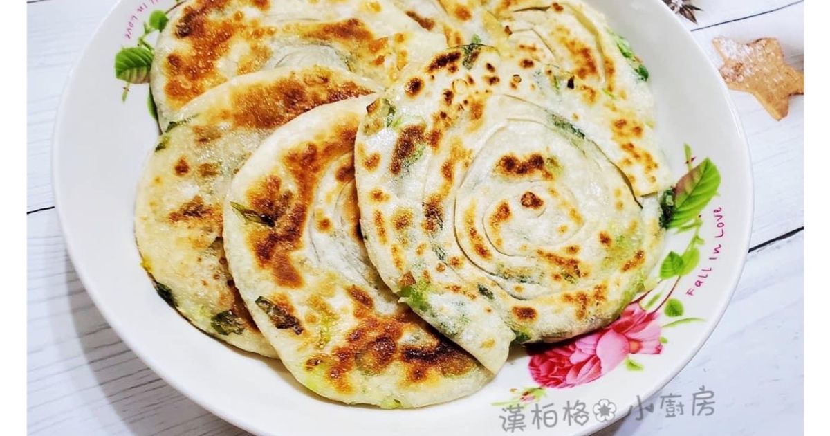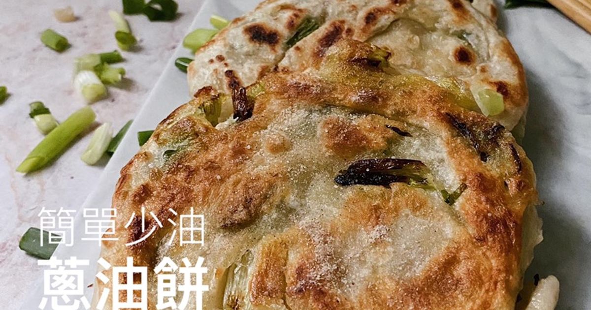 使用中筋麵粉與溫熱水(燙麵法)製作麵團,口感才會外酥內軟。桿平時豪邁地灑上蔥花與胡椒鹽,捲起來再桿平煎熟。Cookpad 上還有少油健康版的蔥油餅做法,以及懶人專屬的食譜:利用現成的水餃皮+蔥就能做!