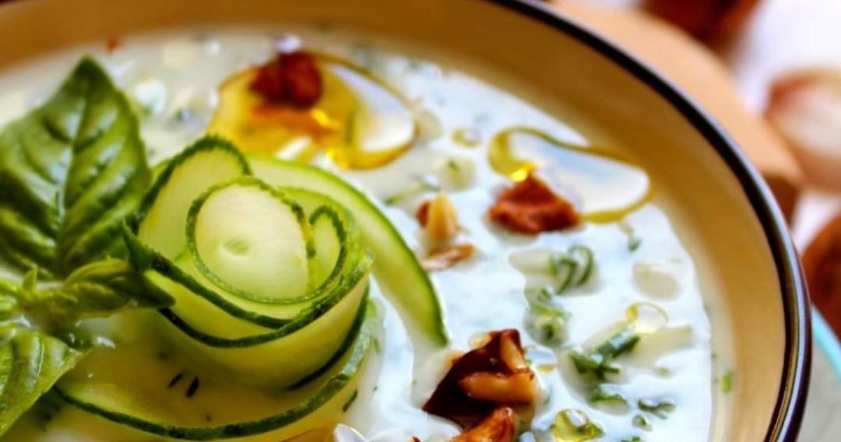 Прохолодний і незвичний суп для спекотних днів... В Болгарії для традиційного таратора беруть ”кисело мляко” і це не кисле молоко, а йогурт. В суп кладуть багато огірків, часник і волоські горіхи, він виходить доволі густим и ситним. #глобальнийфартух2024 #зелений #йогурт