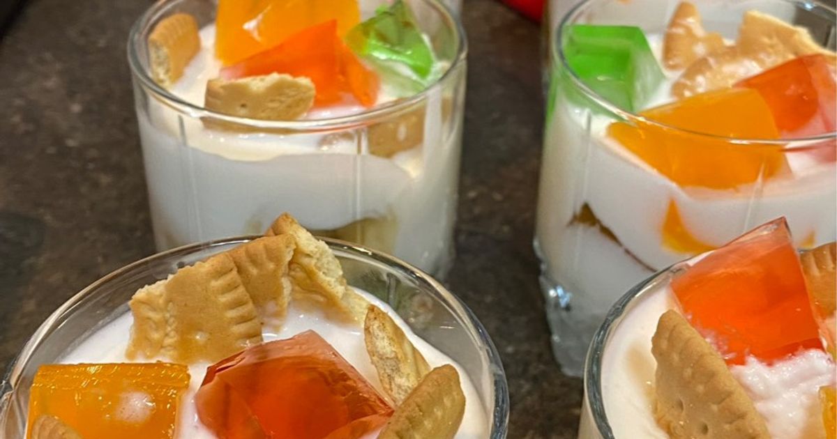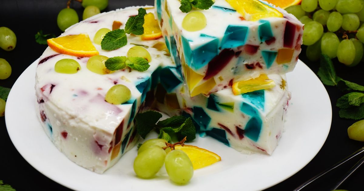 Це десерт, який виглядає як маленький витвір мистецтва: яскраві шматочки желе в ніжному кремі. Ідеально підходить, якщо треба швидко зробити “вау” для гостей.