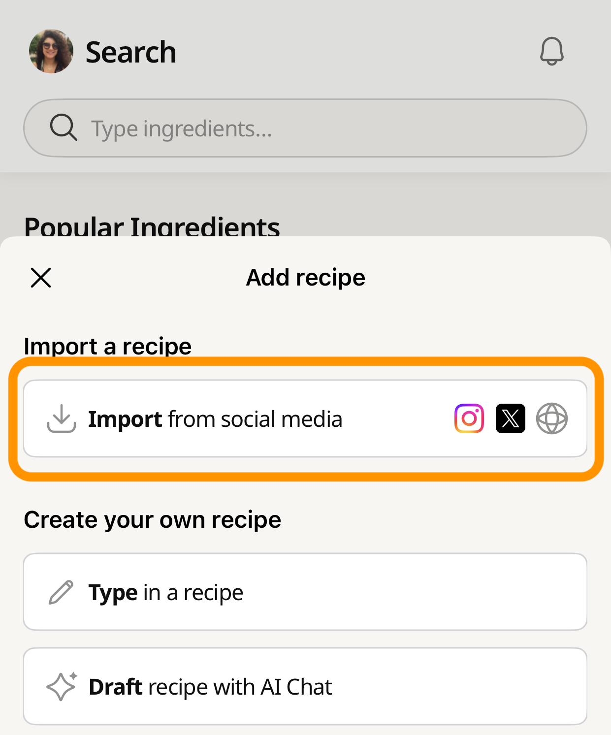 - Paste the recipe link. Once the recipe loads, tap Import.