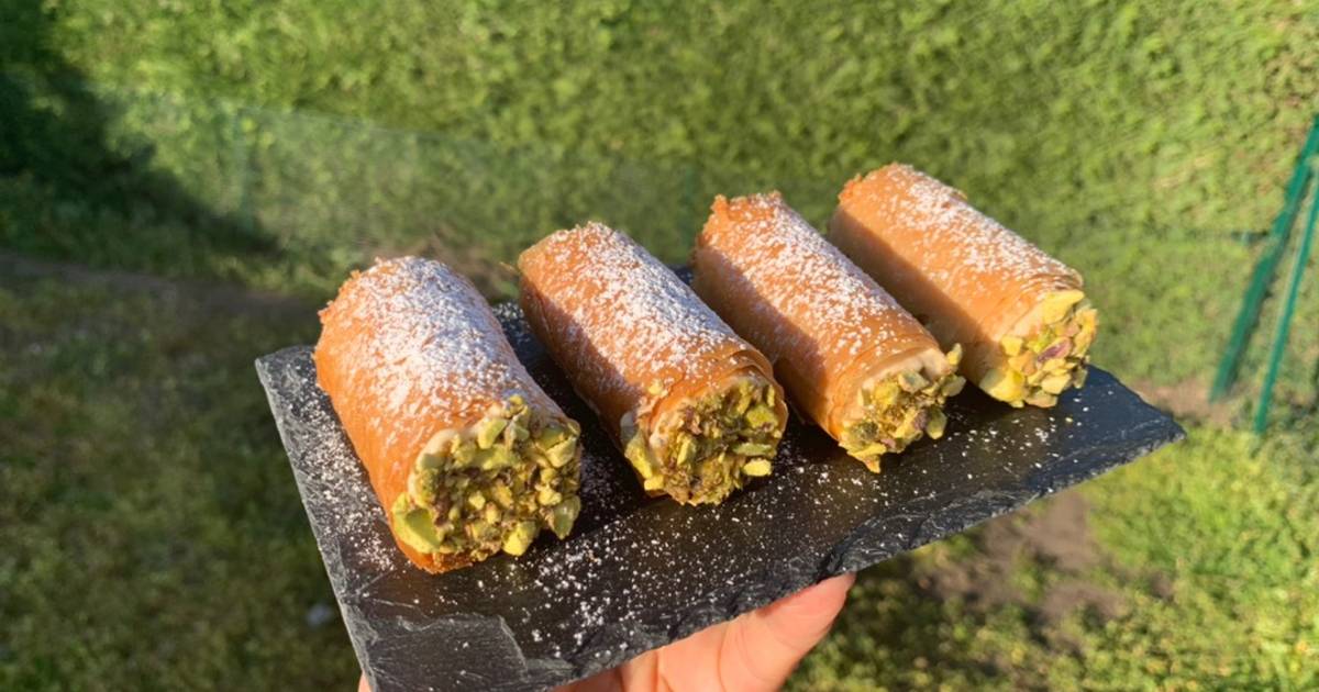 The dough is rolled thin, wrapped around metal tubes, and deep-fried until crispy. Once cooled, they’re filled with sweet ricotta cream and often garnished with chocolate chips, pistachios, or candied fruit.