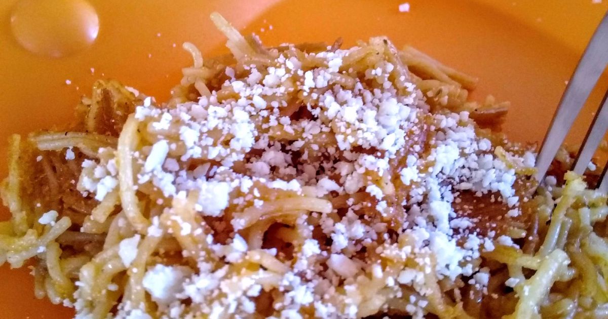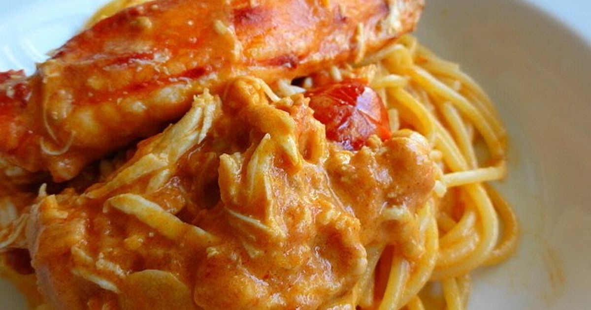 Mì sợi nhỏ nấu với nước sốt cà chua và ớt, cay nhẹ, đậm đà.