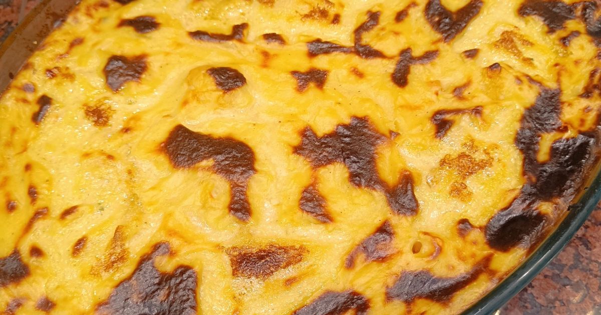 Mì ống nướng cùng phô mai mặn, món ăn gia đình truyền thống.