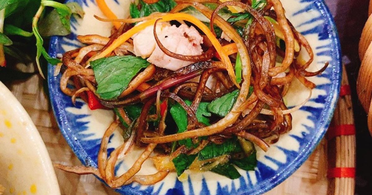 Hoa chuối thái mỏng, ngâm chanh/dấm cho trắng giòn rồi trộn cùng thịt heo hoặc gà. Món nộm dân dã nhưng rất đưa cơm, giúp cân bằng vị béo ngày Tết.