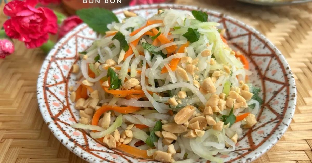 Đu đủ bào sợi trộn chua ngọt giúp bữa ăn nhẹ nhàng hơn. Đây là món gỏi quen thuộc, nguyên liệu dễ kiếm trong những ngày Tết.