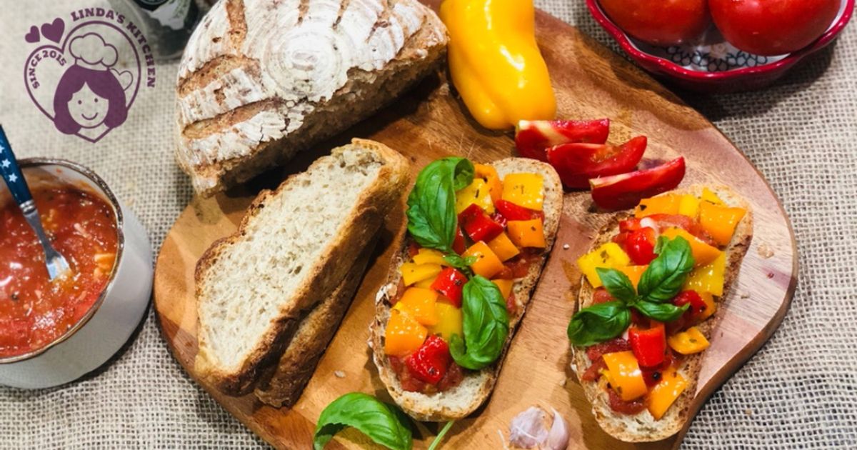 Là một trong những món ăn truyền thống của Ý thì bruschetta được biết nhiều nhất trên thế giới với lịch sử lâu đời và được mọi người yêu thích nhờ vô số phiên bản của nó! Công thức cổ điển nhất bao gồm lát bánh mì cổ điển, được xát với tỏi và được phủ bằng cà chua tươi xắt nhỏ, với chút dầu & một chút muối. Đây cũng là món khai vị thanh nhẹ ngon khó cưỡng. Tuỳ vào khẩu vị nhà bạn mà có thể biến thiên chay, mặn tuỳ ý như thêm thịt bằm, phomai hoặc nấm để đổi bữa! - Lavender