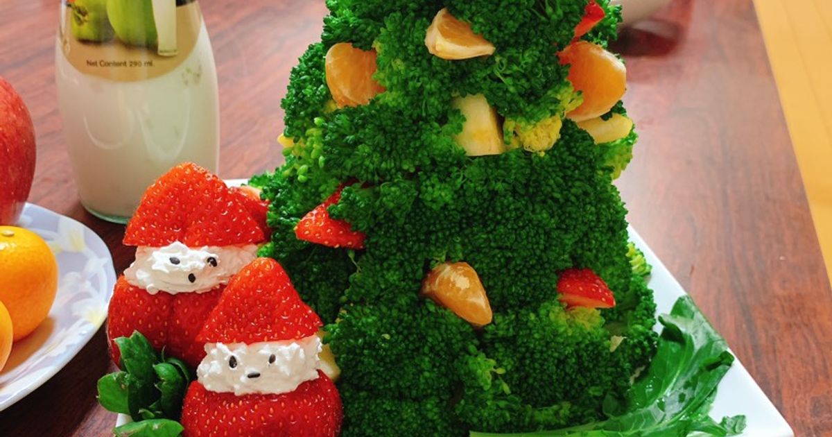 Bạn có thể bắt đầu với những màu sắc đặc trưng như đỏ, xanh lá và trắng. Ví dụ, dùng cà chua bi, lá húng quế để tạo hình cây thông Noel🎄 cho món salad. Trái dâu, cơm nắm được tạo hình ông già Noel 🎅 hay tuần lộc 🦌 cũng là điểm nhấn thú vị cho tiệc Giáng sinh tại nhà.